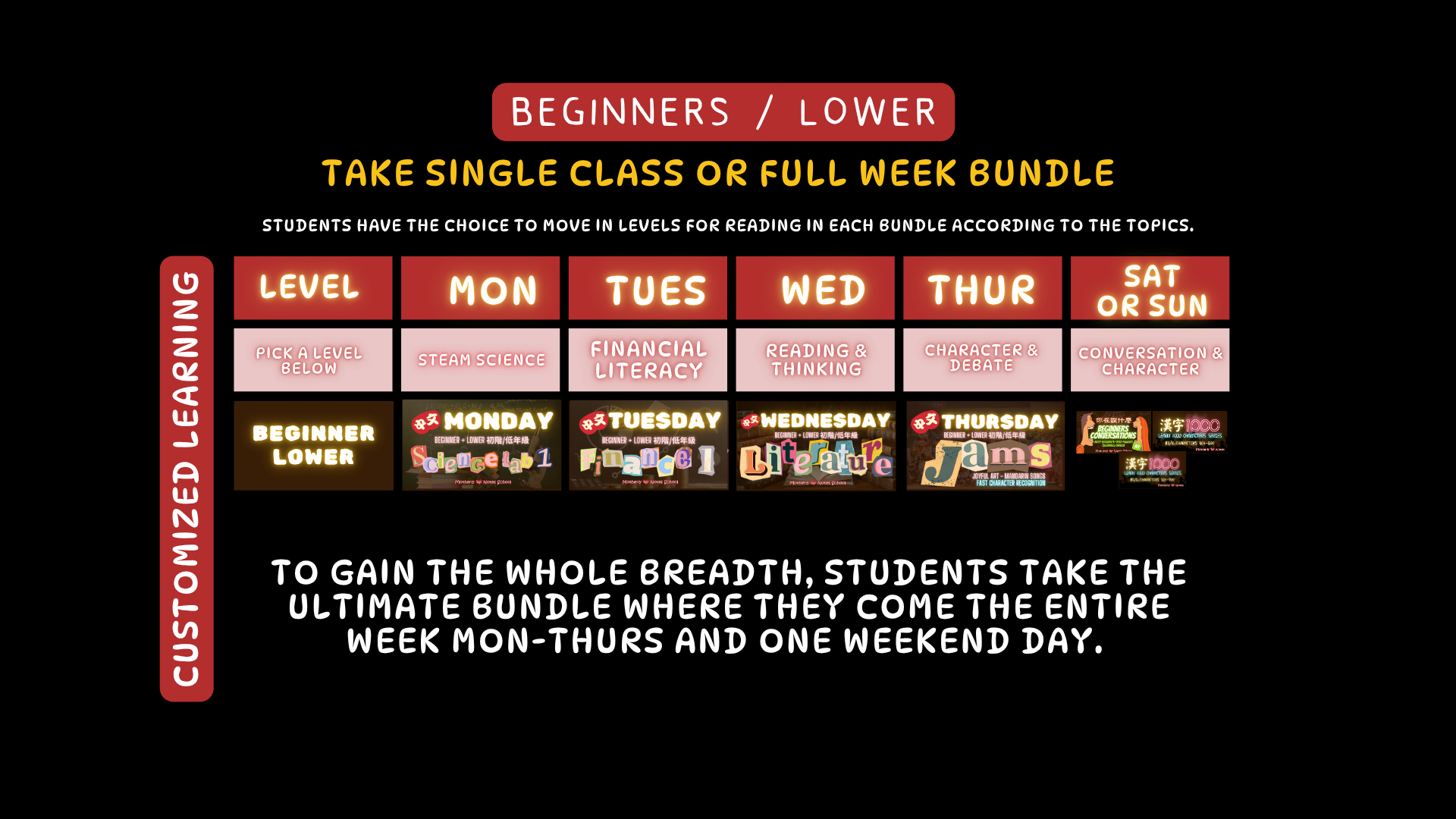 Our courses are best done with a BUNDLE with a different subject each day. Each course has: