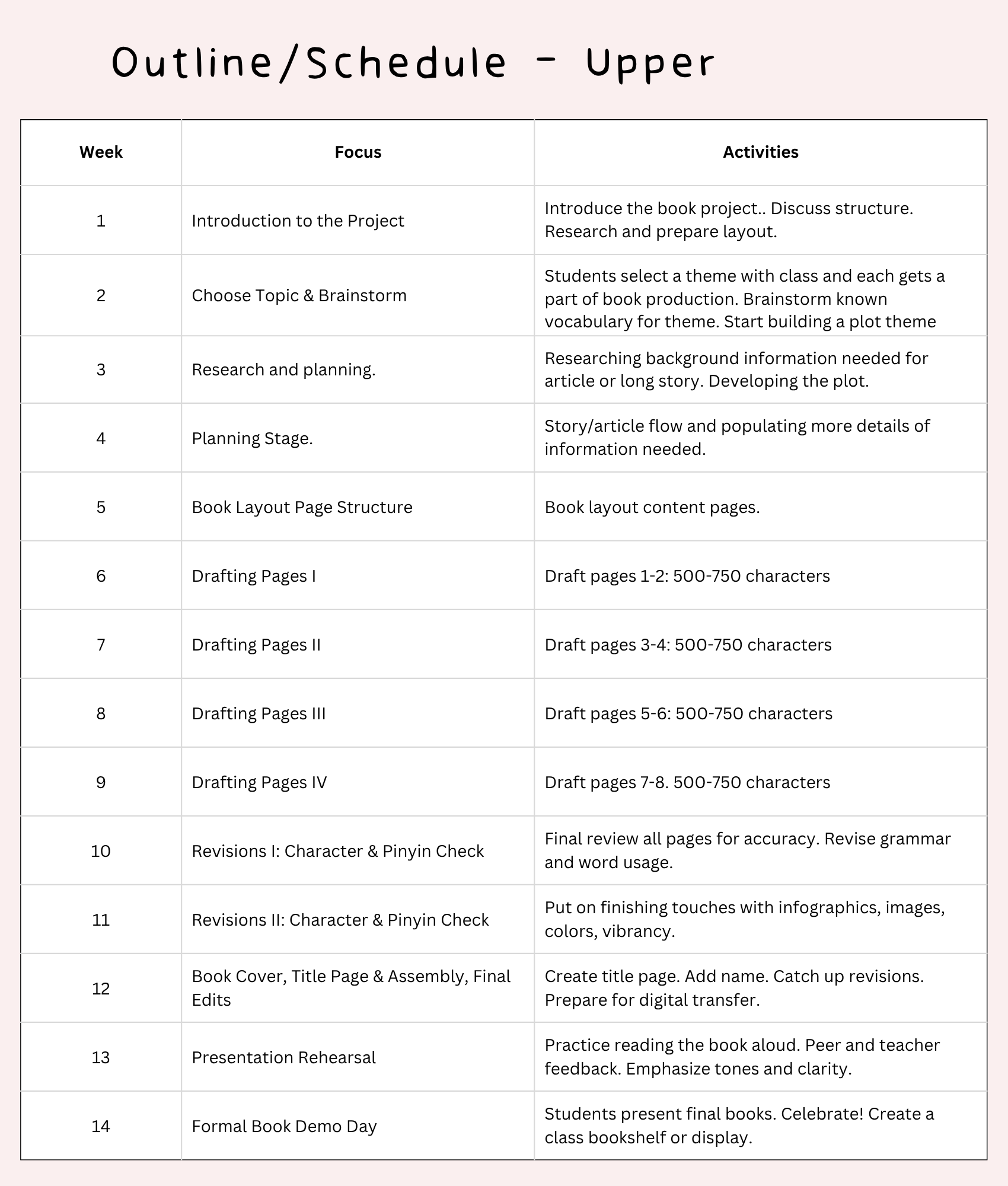 Pull it all together from our Everyday Chinese program with Thursday Speech and Essay day where you write, publish, do review, learn how to give a speech, do presentations, or write an essay depending on your level. It's part of our whole child program! Varies per semester.